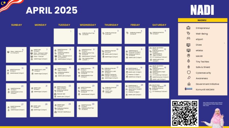 TARIKH : 12 APRIL 2025 MASA : 2.30 PETANG – 4.30 PETANG TEMPAT: NADI PARIT 11 HUTAN MELINTANG PESERTA: SEORANG TUJUAN Gambar di sini: https://parit11hutanmelintang.nadi.my/webinar-dilea-kelas-berkala-sejarah/