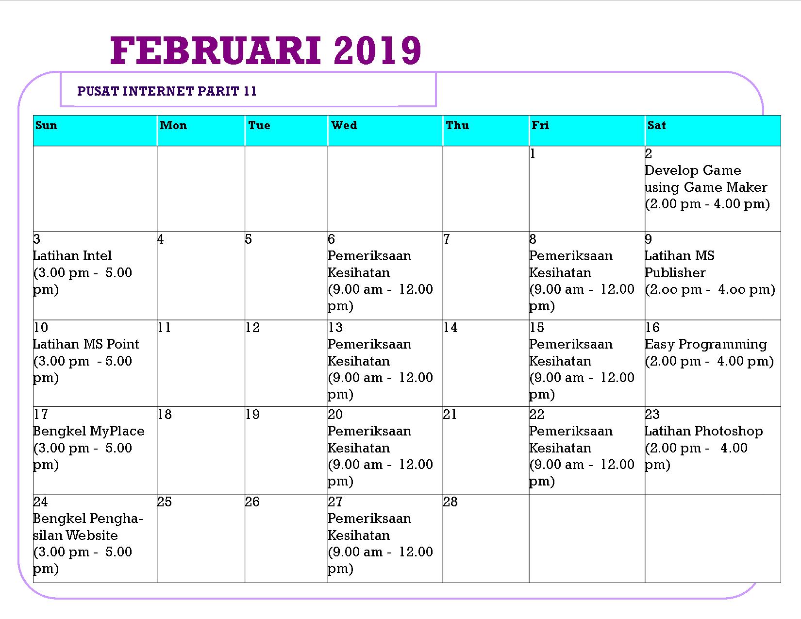TARIKH : 4 FEBRUARI 2019 MASA : 9.00 PAGI – 11.00 PAGI TEMPAT : BILIK LATIHAN PUSAT INTERNET PARIT 11, HUTAN MELINTANG